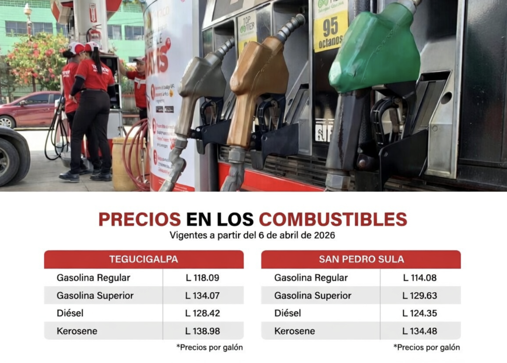 La Secretaría de Energía de Honduras anunció una nueva estructura de precios en los combustibles que entrará en vigencia a partir del 6 de abril de 2026, reflejando incrementos significativos en la mayoría de los derivados del petróleo.
