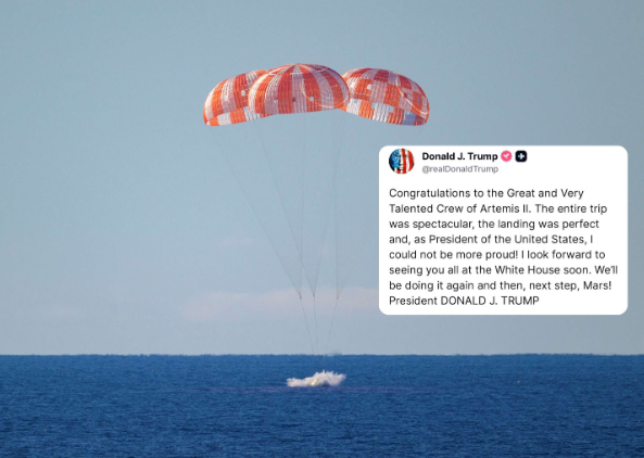 De la Luna a la Casa Blanca… y de ahí a Marte A través de su red social, Truth Social, Trump lanzó un mensaje que ya resuena en los laboratorios de la NASA. «¡Felicitaciones a la magnífica y talentosa tripulación! El aterrizaje fue perfecto y, como Presidente, no podría estar más orgulloso», escribió.