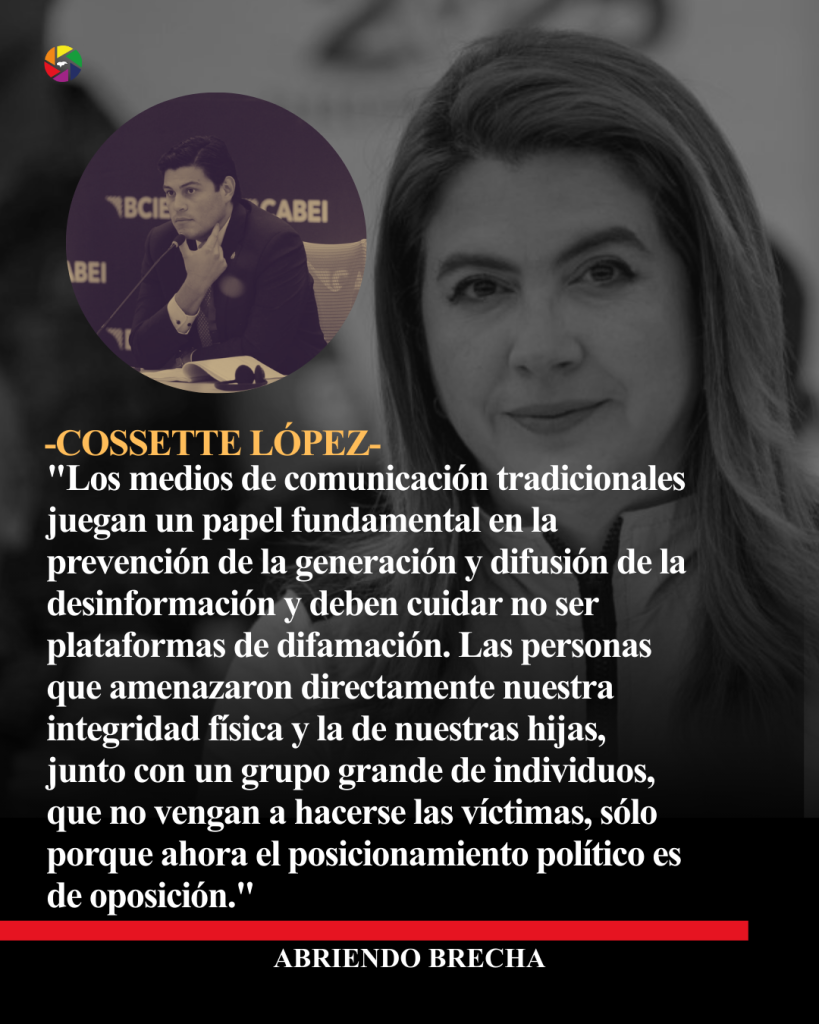 La consejera electoral Cossette López expresó en redes sociales que los medios de comunicación tradicionales no deberían prestarse para difundir desinformación, evitando así convertirse en plataformas de difamación. Esto ocurre luego de que el consejero Marlon Ochoa afirmara que existen amenazas de muerte en su contra.