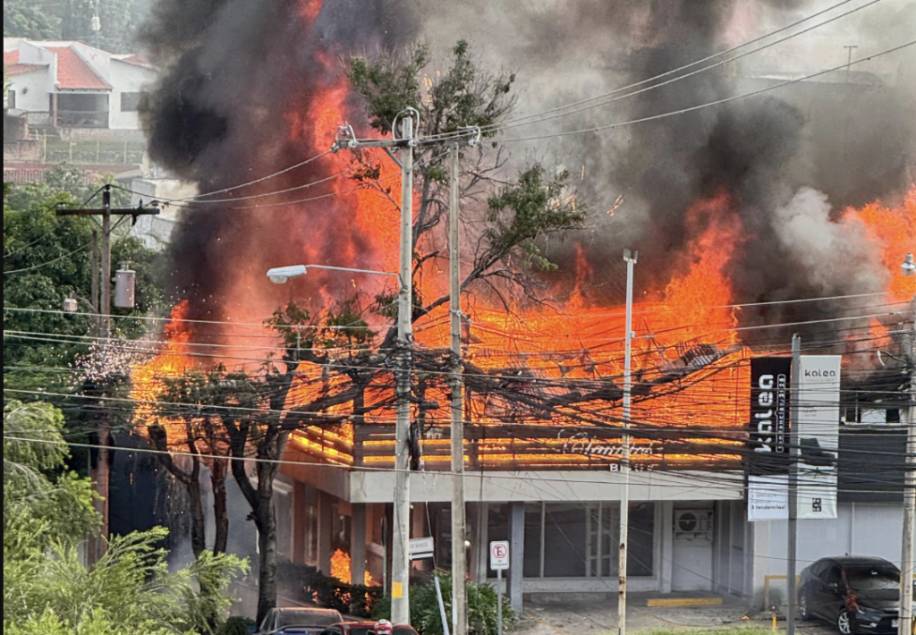 Un devastador incendio arrasó este lunes por la tarde el restaurante Claudio’s, ubicado en Castaños Sur, Boulevard Morazán, en la capital hondureña.