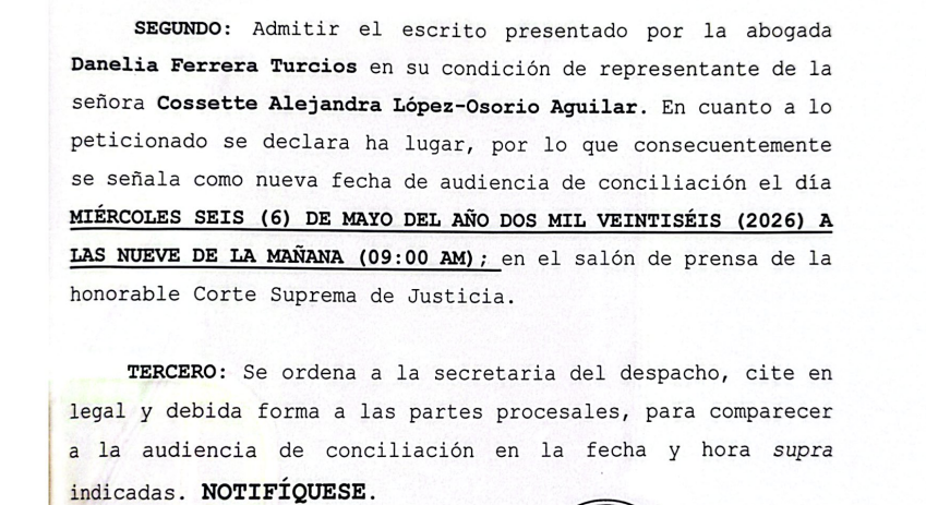 La justicia ha convocado a Ochoa para participar en una audiencia de conciliación obligatoria tras la querella interpuesta por la actual consejera, Cossette López.