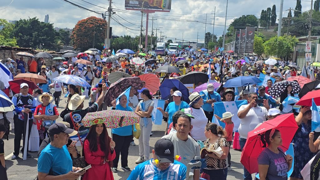 Con biblias y pancartas en mano, los asistentes desfilaron con cantos, danzas y carrozas coloridas, culminando las actividades en el Parque de Pelota Lempira Reina, donde se programaron eventos para el resto del día.