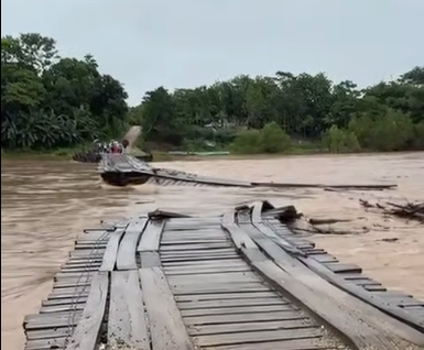 El puente de madera que conectaba a los pobladores con otras zonas del municipio colapsó tras el aumento del caudal, dificultando el traslado de personas y el abastecimiento de alimentos y medicinas.