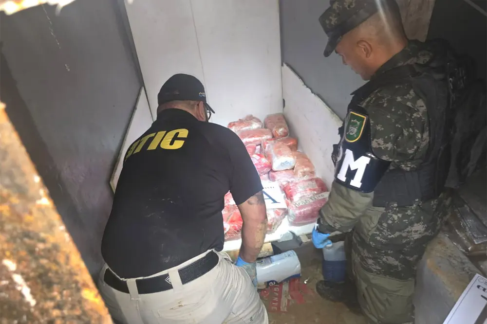 Durante la inspección del sitio, que contó con el apoyo de la Policía Militar del Orden Público (PMOP), se reportaron hallazgos significativos de drogas, armas y municiones ocultas bajo tierra. Según informes preliminares, esta operación es una extensión de las investigaciones iniciadas tras un reciente operativo antidroga en San Pedro Sula, donde varios miembros de la estructura criminal lograron huir con evidencias en un autobús.