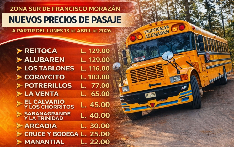 Transportistas que cubren rutas hacia municipios como Reitoca, Alubarén, Ojojona y Santa Lucía anunciaron un incremento en el valor del pasaje, el cual entrará en vigencia a partir de este lunes 13 de abril de 2026.