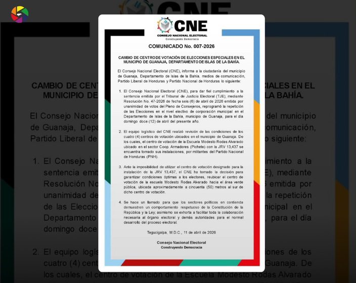 El Consejo Nacional Electoral anuncia el cambio de un centro de votación en el municipio de Guanaja para las elecciones de este domingo 12 de abril, debido a la toma del plantel donde originalmente funcionaría.