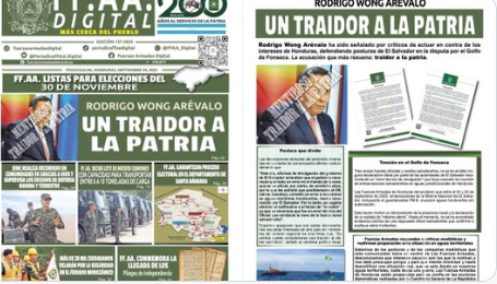 El Colegio de Periodistas de Honduras (CPH) manifestó su enérgico repudio hacia el jefe del Estado Mayor Conjunto, general Roosevelt Hernández, luego de que el periódico oficial de las Fuerzas Armadas publicara una nota en la que se tilda de “traidor a la patria” al periodista Rodrigo Wong Arévalo.