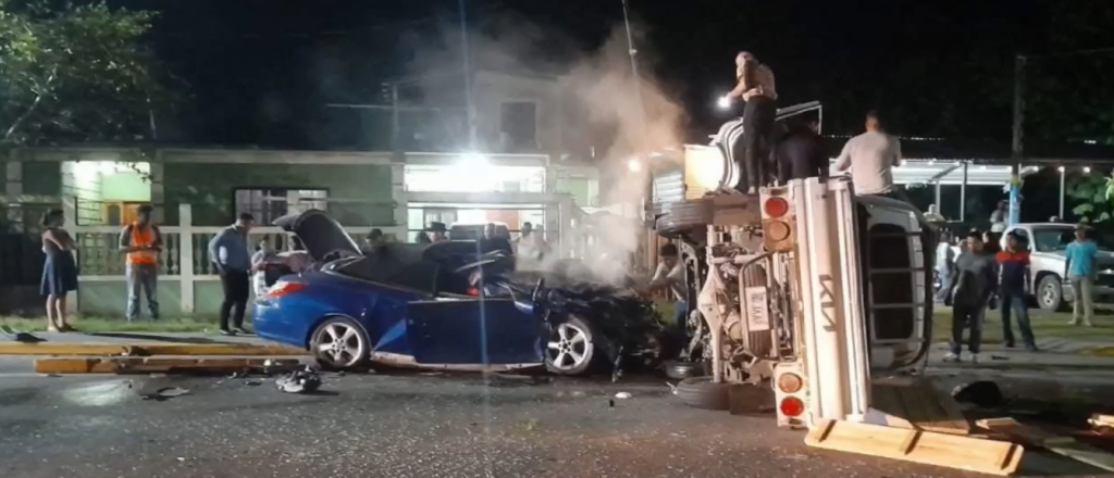 De acuerdo con la información preliminar, un vehículo tipo turismo y un camioncito colisionaron de forma violenta, provocando que uno de los automotores quedara volcado. La magnitud del impacto evidencia la fuerza con la que se produjo el choque, aunque hasta el momento se desconoce cuál de los conductores tuvo la responsabilidad.