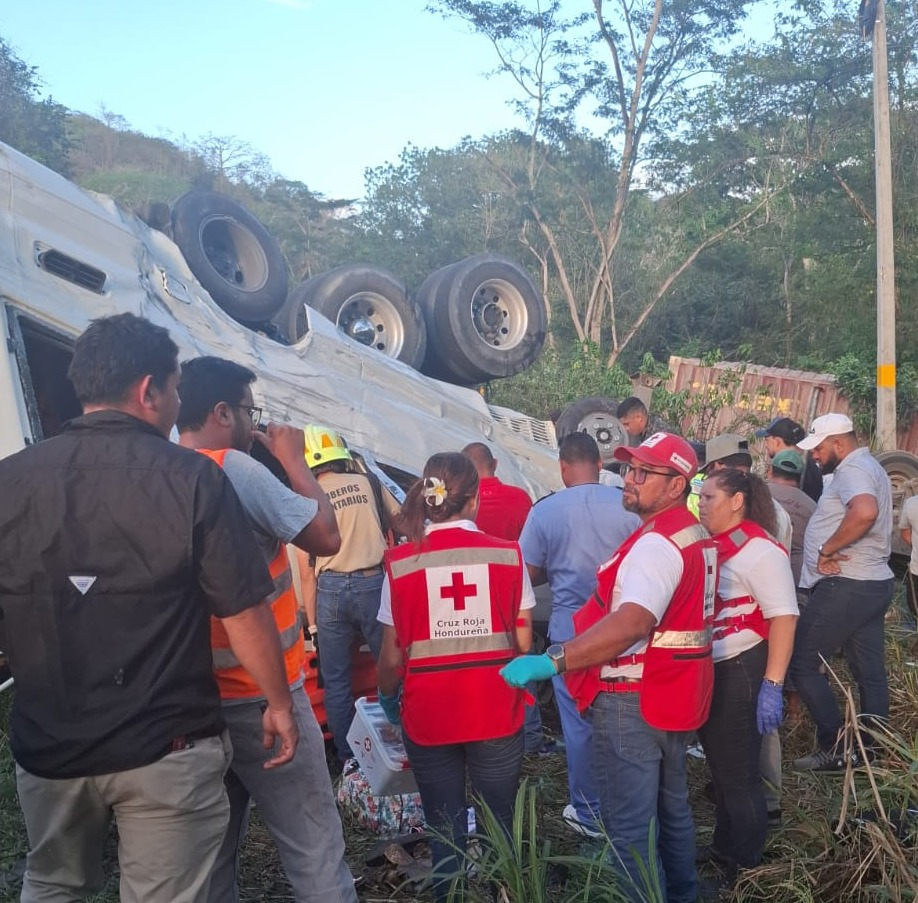El siniestro involucró una rastra que transportaba cianuro y un bus de pasajeros tipo coaster, el cual volcó tras el impacto en la cuesta de Los Limones, sector de La Ceibita, según el informe del Cuerpo de Bomberos de Honduras.