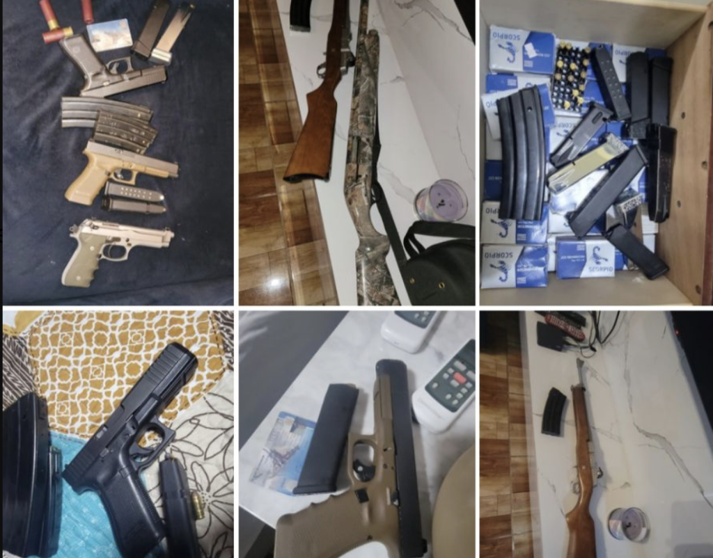 Como resultado preliminar, se decomisaron más de cinco armas de fuego, incluyendo pistolas y fusiles, junto con munición de diversos calibres y cargadores para distintos tipos de armamento.